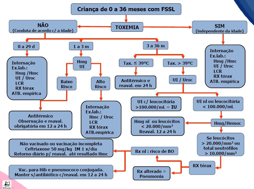 Febre é uma das causas mais comuns de consulta em pediatria. 25% de todas as consultas de emergência se devem à febre. Na maioria dos casos, após a avaliação inicial, é possível identificar a causa. Nas crianças menores de 36 meses, em 20% dos casos, essa identificação não é possível. Febre sem sinais localizatórios FSSL - definição: Febre com menos de uma semana de duração, que após história clínica e exame físico cuidadosos não tem a sua causa estabelecida.