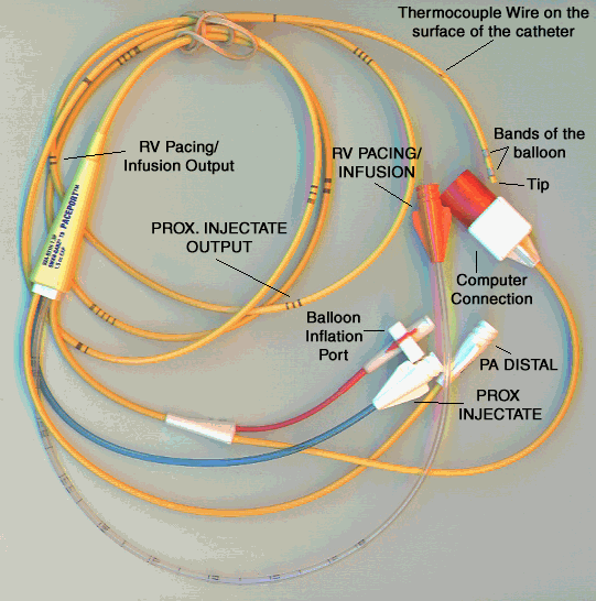 - um balonete na extremidade distal, para permitir a medida da pressão capilar pulmonar (pressão capilar pulmonar)